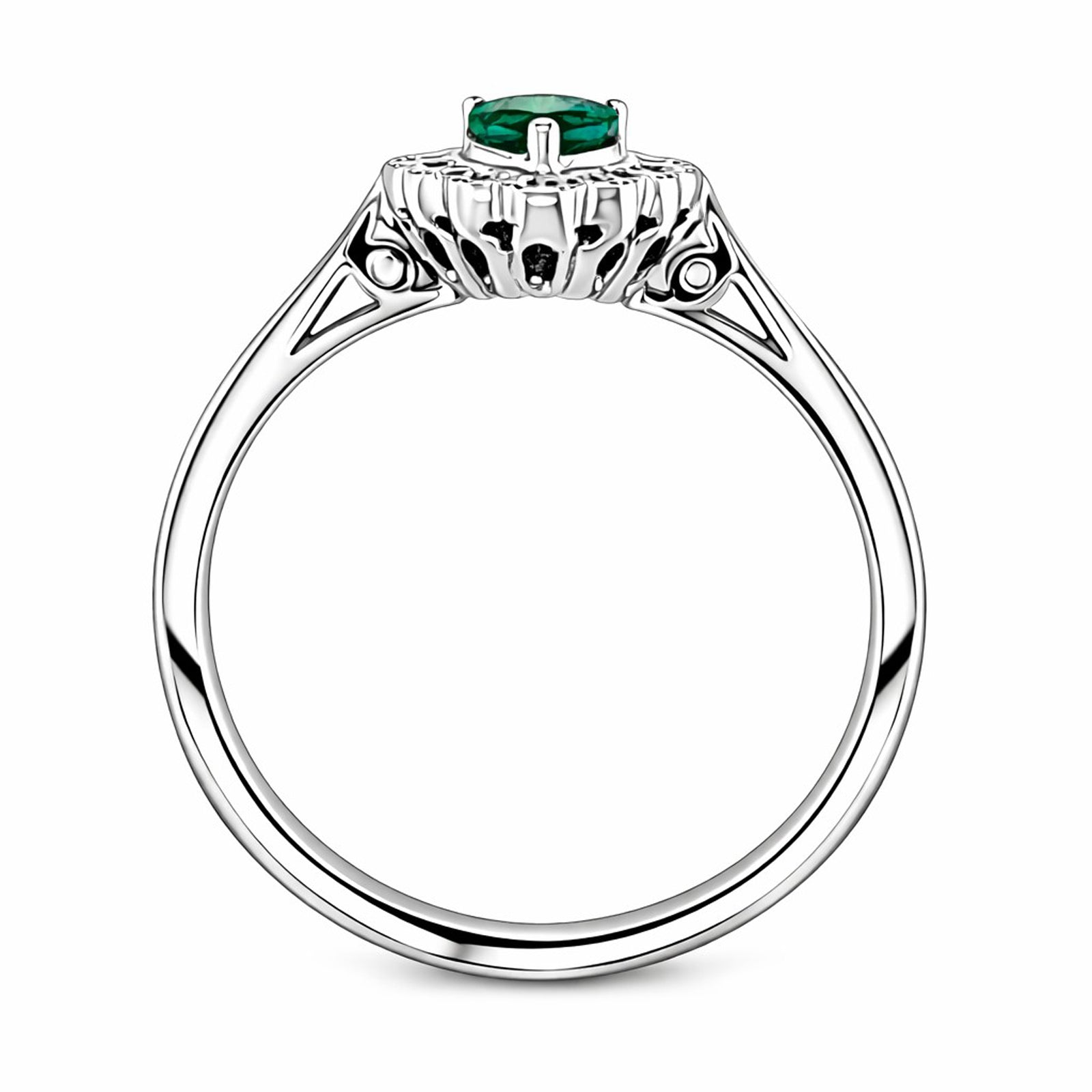 18ct White Gold Emerald and Diamond Teardrop Cluster ring. This ring features a beautiful pear cut emerald 0.22ct which is surrounded by a halo of white round brilliant cut diamonds 0.19ct.