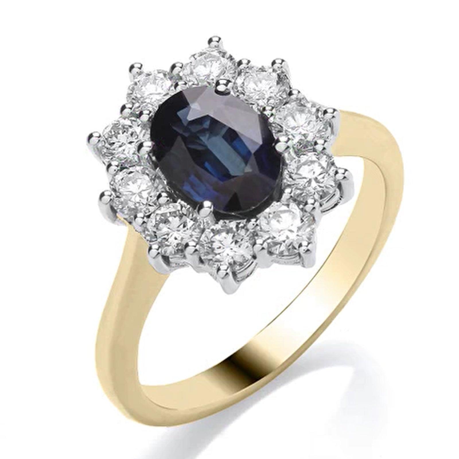 18ct Yellow Gold Oval Sapphire & 0.90ct Diamond Cluster Ring