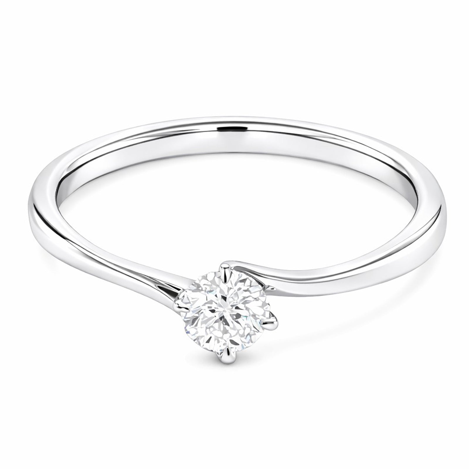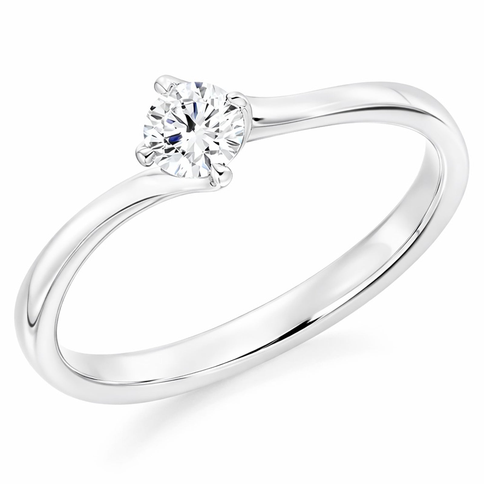 9ct White Gold 0.23ct Diamond Twist Solitaire Ring Centre Diamond Weight: 0.23ct Apprx.Centre Stone Size: 4.00mm Centre Diamond Cut: Round Brilliant Centre Diamond Quality: D colour VS clarity Total Diamond Weight: 0.23ct Setting: Claw Set Style: Solitaire with Plain Shoulders