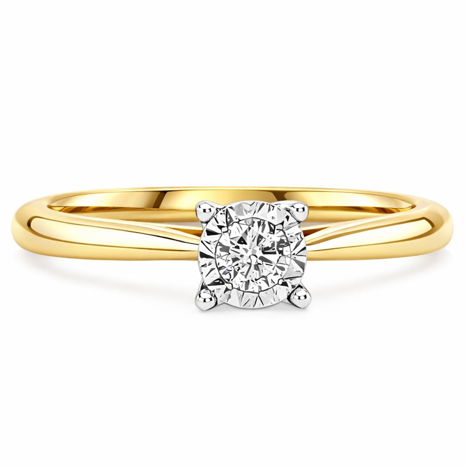 9ct yellow gold 0.10ct diamond claw illusion set solitaire ring.