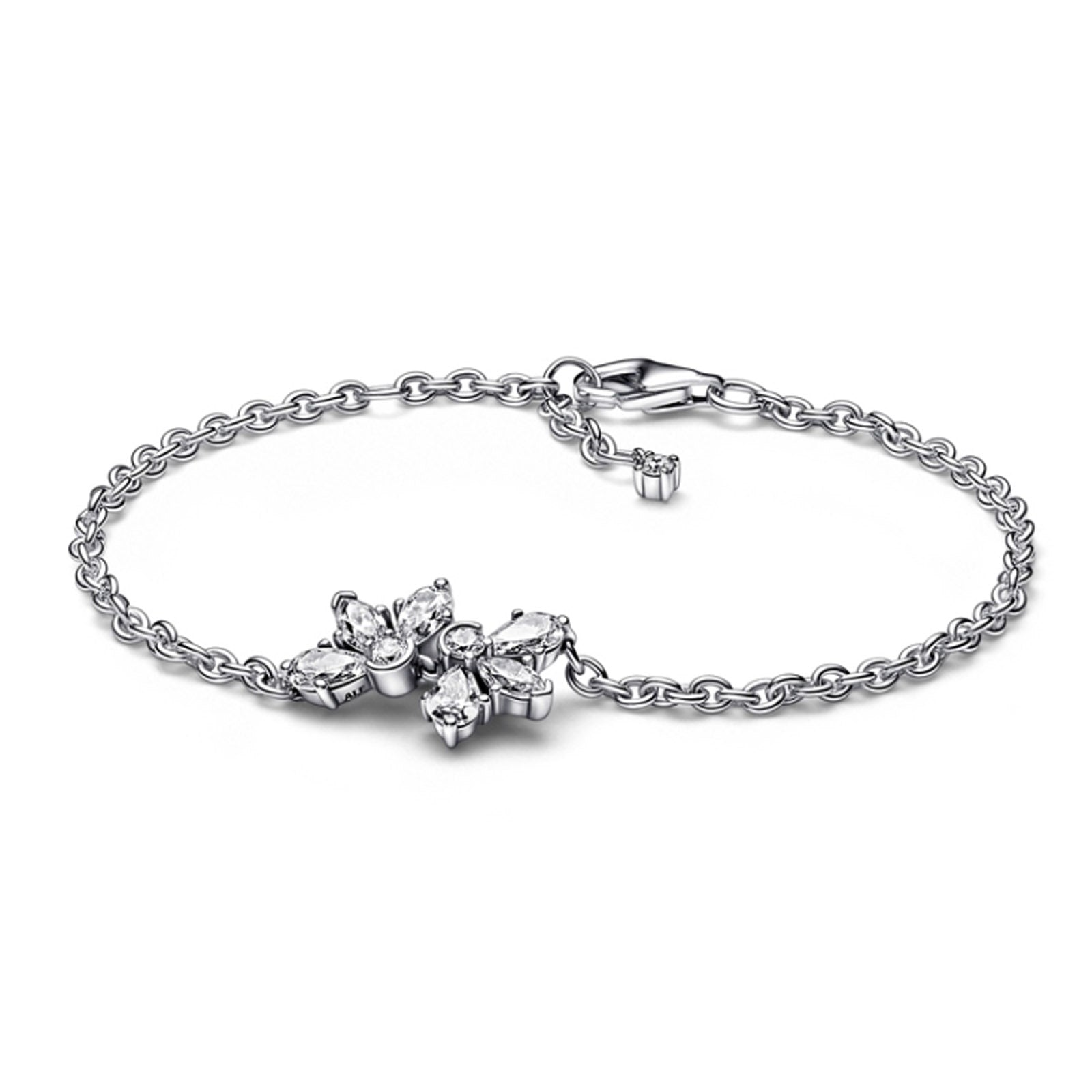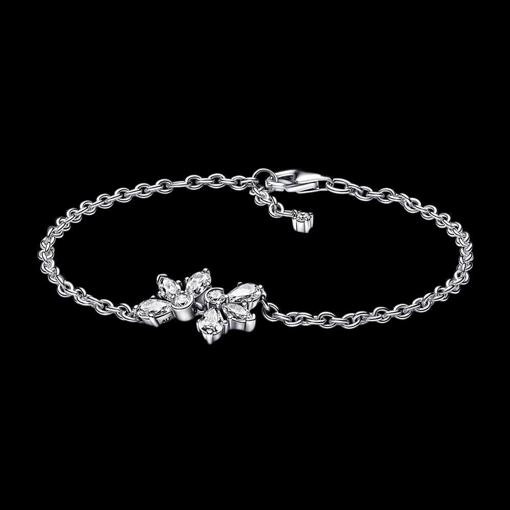 Herbarium cluster sterling silver bracelet with clear cubic zirconia