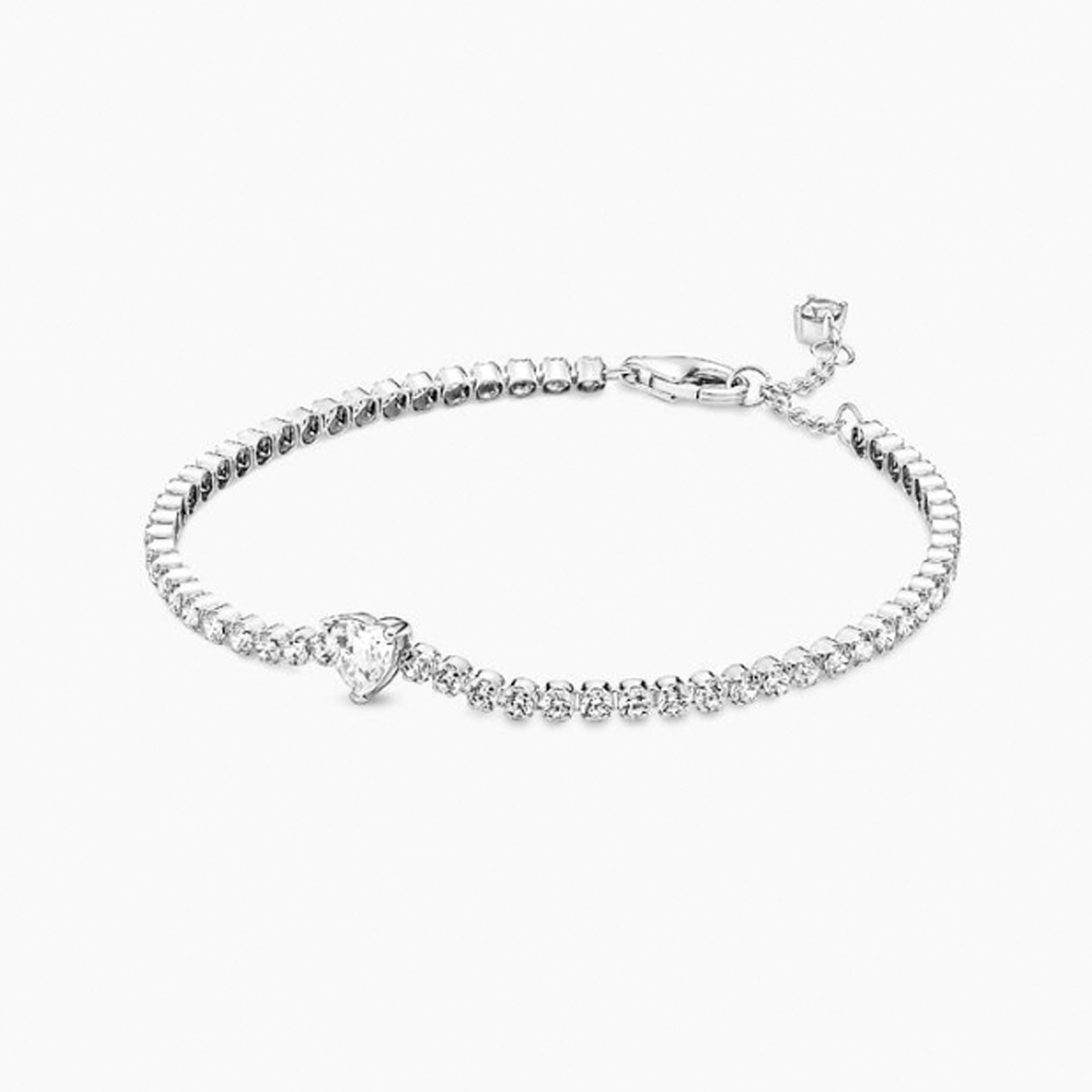 Heart sterling silver tennis bracelet with clear cubic zirconia