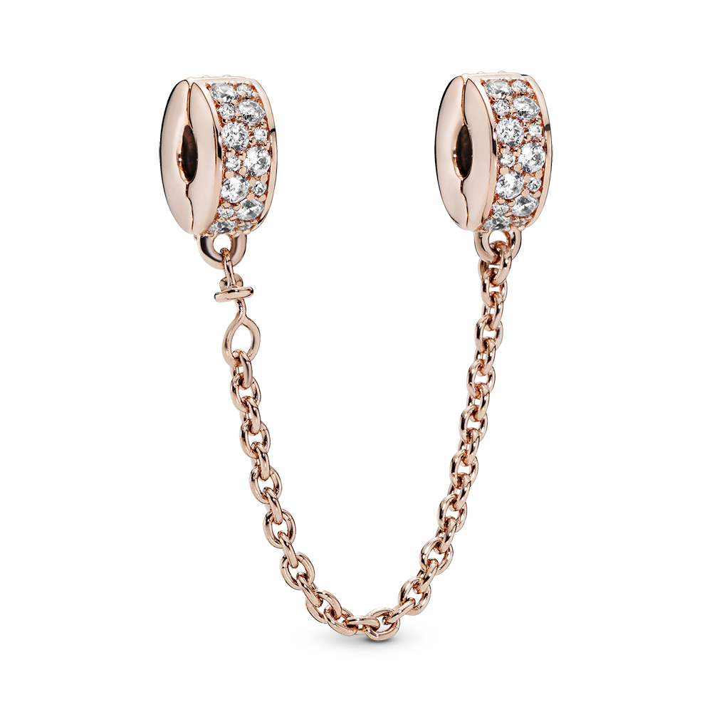 PANDORA Rose safety chain with clear cubic zirconia and silicone grip