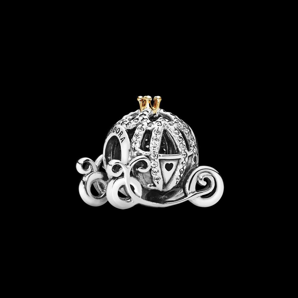 Disney Cinderella pumpkin coach silver charm with 14k and cubic zirconia