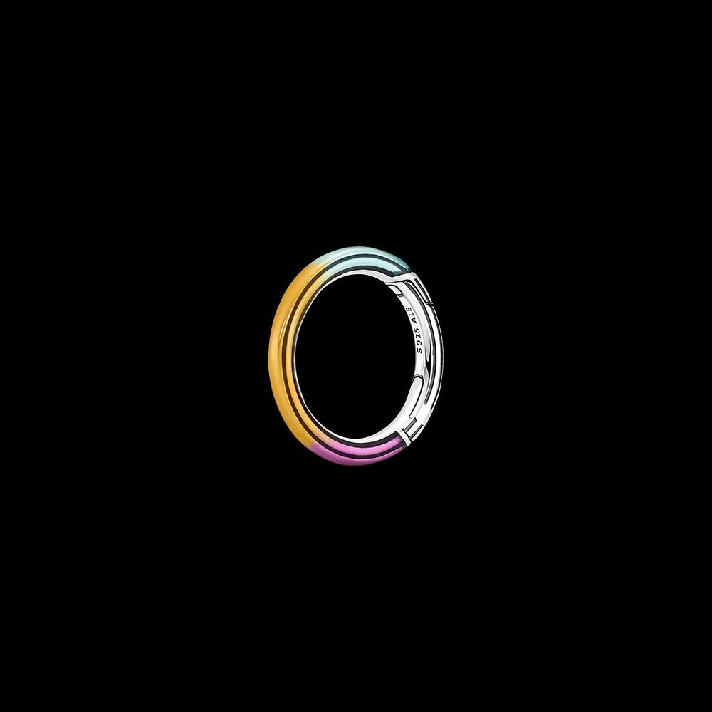 Sterling silver round connector with transparent yellow, purple and turquoise enamel