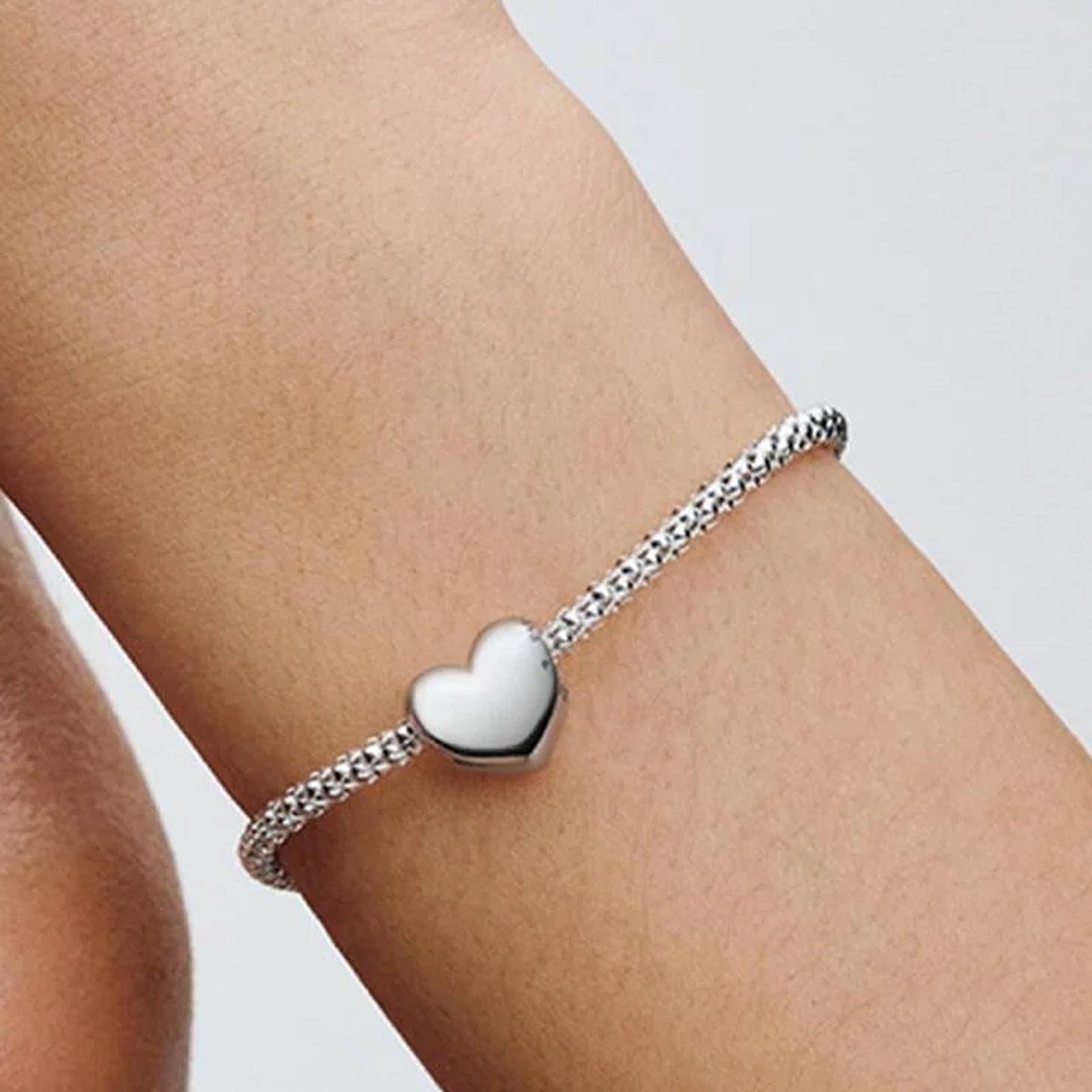 Be Love Engravable Heart Charm. Make your mark on our engravable heart charm. Crafted in smooth sterling silver, our polished heart is the perfect canvas for your message of love. Sterling silver. Our signature metal, loved for its cool, bright finish. Why you’ll love it. The perfect personalized gift for everyone on your list – even yourself. Hand-finished. To maintain our high quality standards Keep it perfect by gently remove naturally occurring metal tarnish as soon as it starts with a soft cloth. Compatible with Pandora moments. Dimensions 8.1mm deep, 10.6mm high, 11.4mm wide