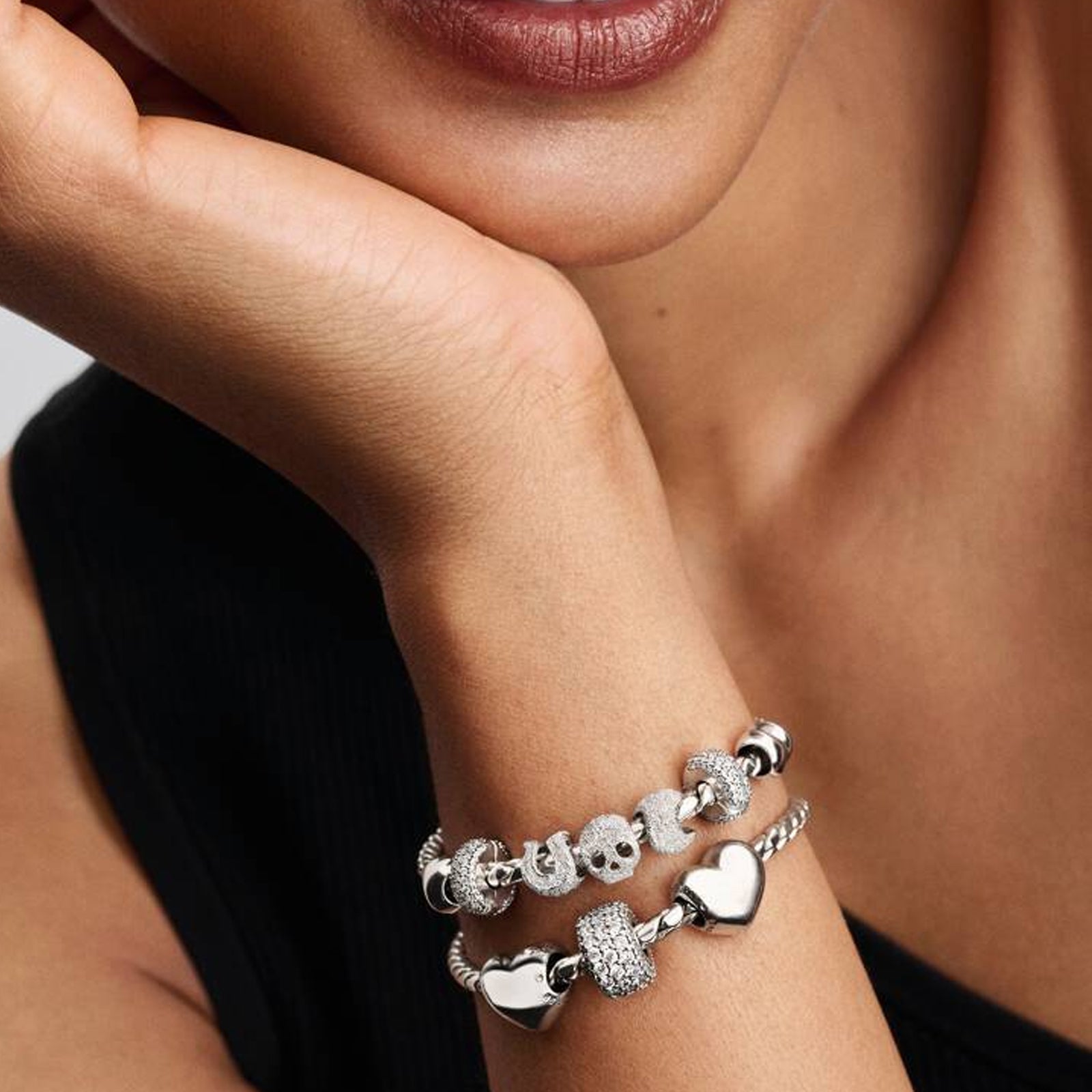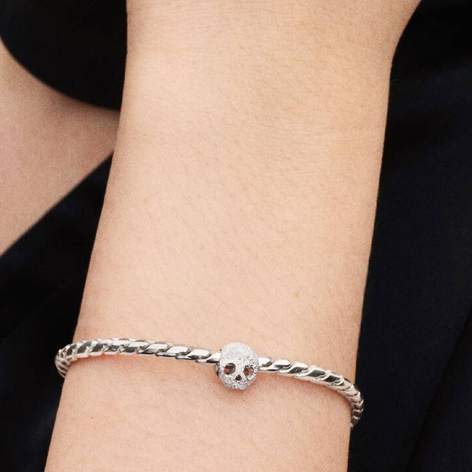 Strong yet shining. Our sterling silver mini skull charm features a diamond-point texture and cut-out details — a small but powerful reminder to live boldly and embrace every moment. Sterling silver. Our signature metal, loved for its cool, bright finish. Why you’ll love it. Tiny skull, big energy — embrace your rebel spirit. Hand-finished. To maintain our high-quality standards Keep it perfect by gently remove naturally occurring metal tarnish as soon as it starts with a soft cloth. Compatible with Pandora moments. Dimensions 6.3mm deep, 8mm high, 6.9mm wide