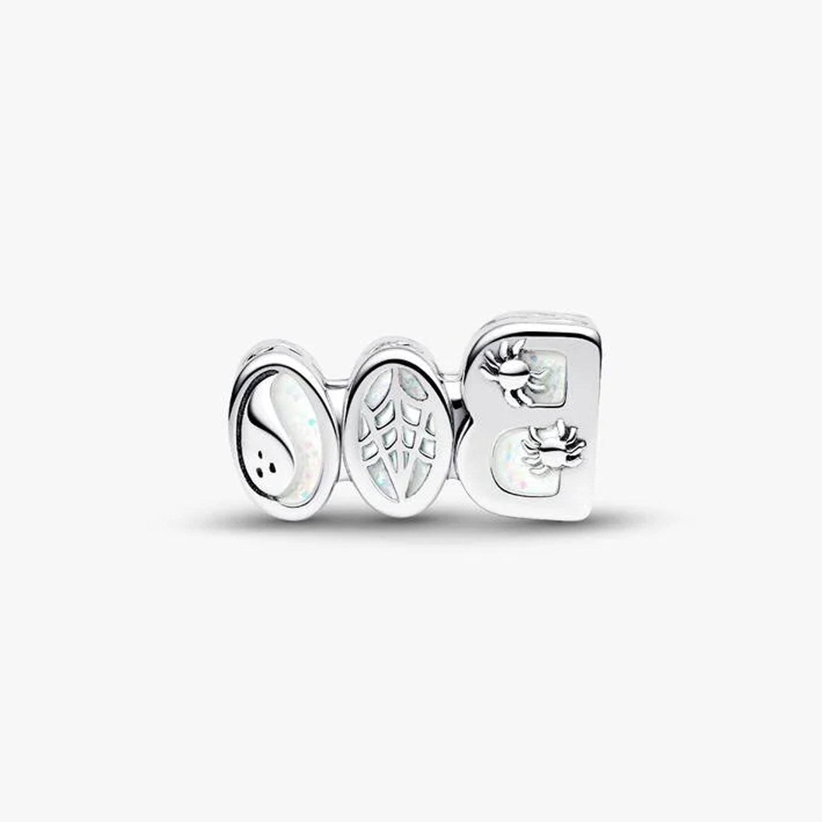 BOO Glow-in-the-dark Charm. This Halloween, BOO it yourself. Wear the scare with our glow-in-the dark charm to celebrate your love for the spookiest season. Cubic zirconia. Flawless and full of flashes of colour, loved for its multi-faceted sparkle. Sterling silver Our signature metal, loved for its cool, bright finish. Enamel. Precisely applied to add depth, gloss and shine. Why you’ll love it. A glow-in-the-dark Halloween treat for you (or your boo). Hand-finished. To maintain our high-quality standards Keep it perfect by gently remove naturally occurring metal tarnish as soon as it starts with a soft cloth. Compatible with Pandora moments. Dimensions 8.7mm deep, 7.1mm high, 13.5mm wide.