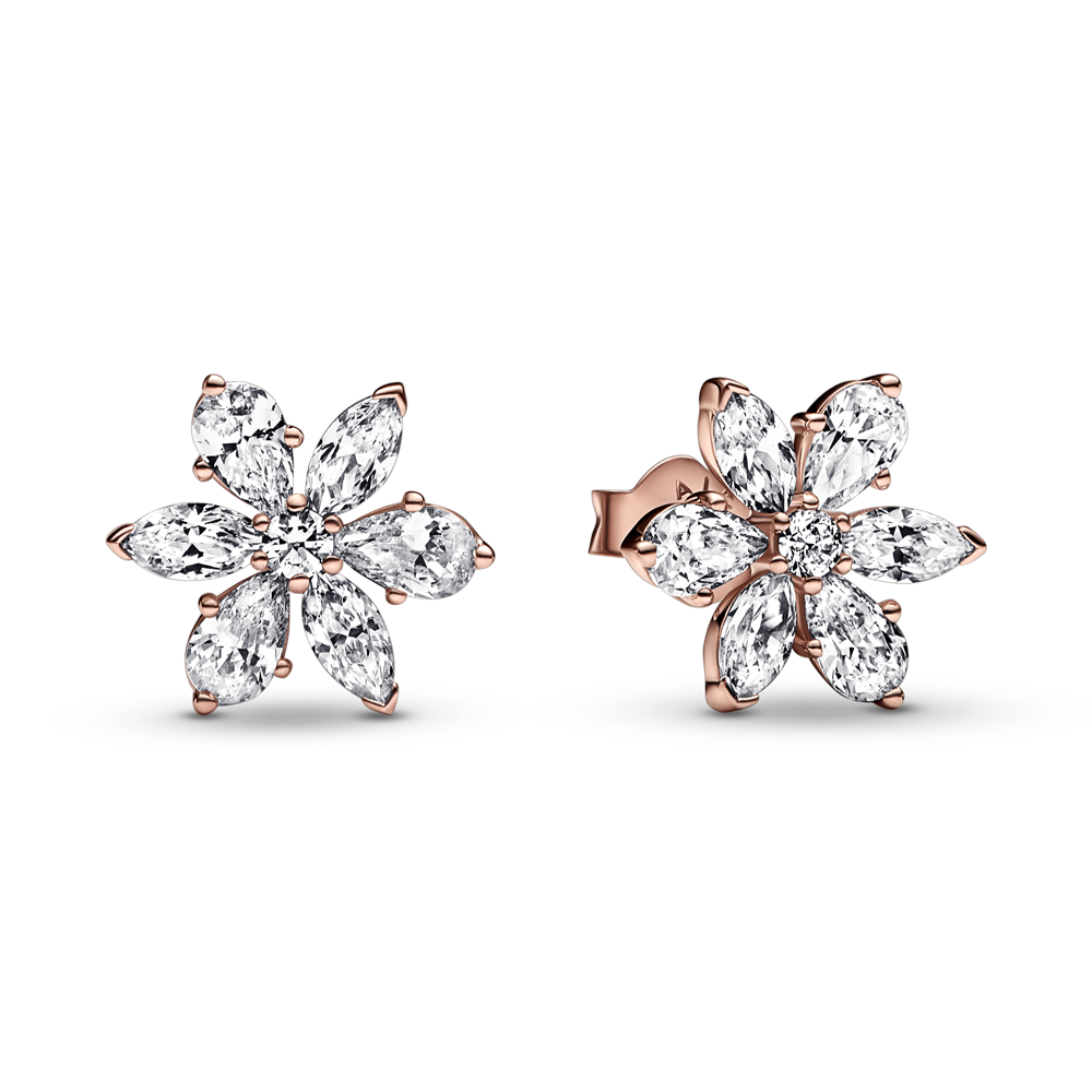 Herbarium cluster 14k rose-gold plated unique metal blend stud earrings with clear cubic zirconia