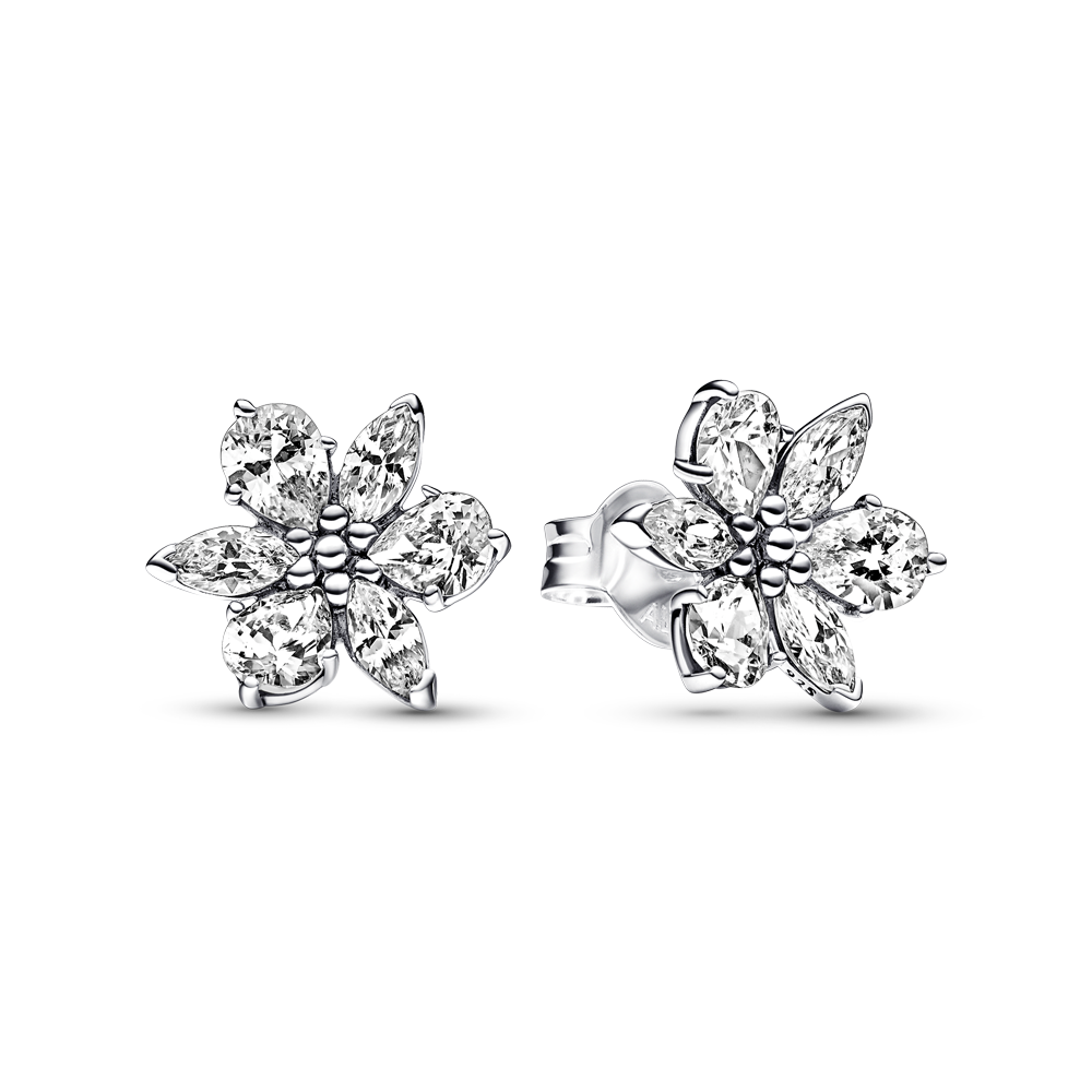 Herbarium cluster sterling silver stud earrings with clear cubic zirconia