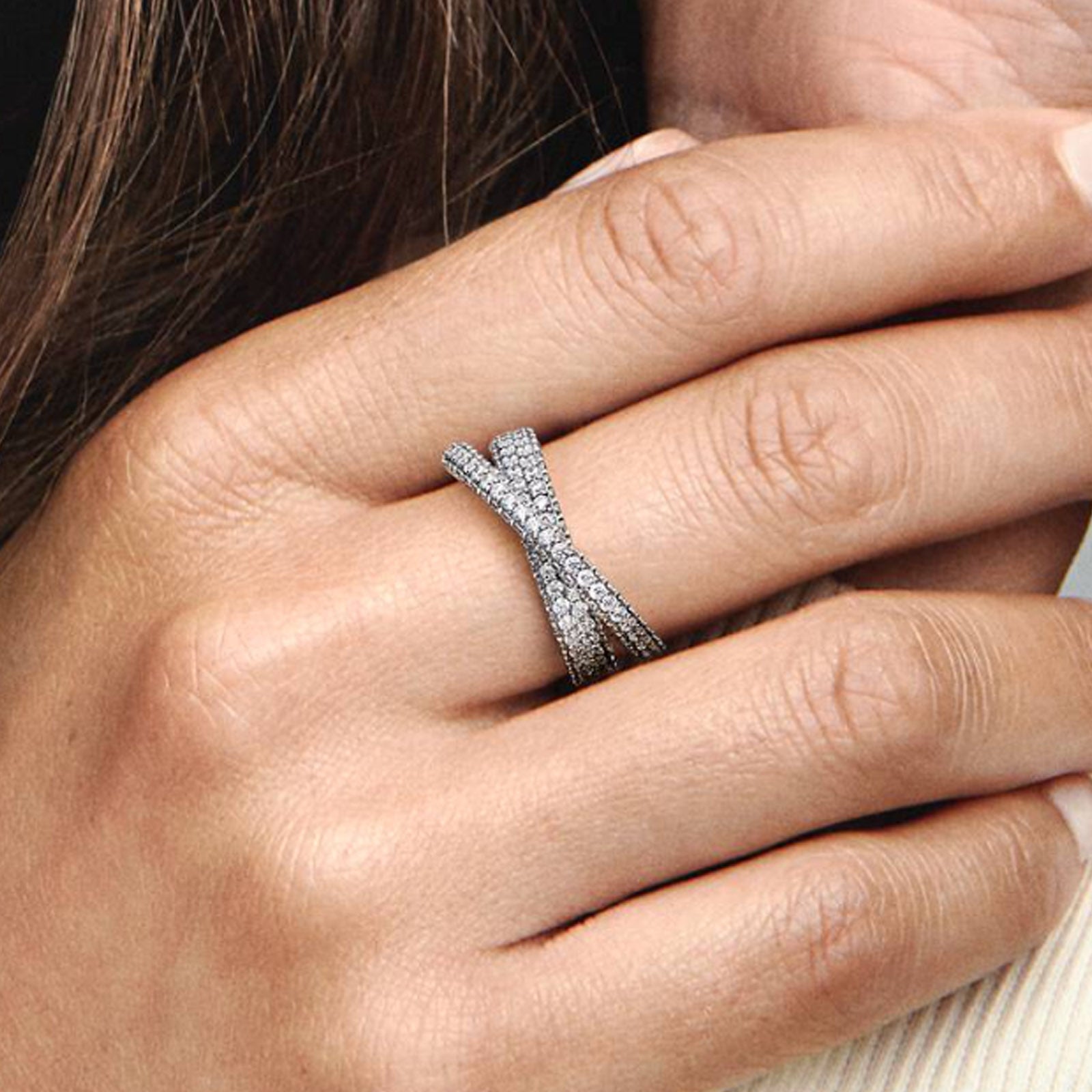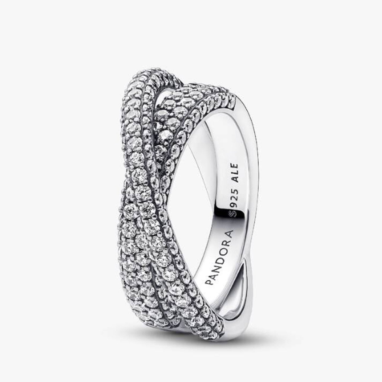 Pandora Timeless Pave Crossover Dual Band Ring - Size 58